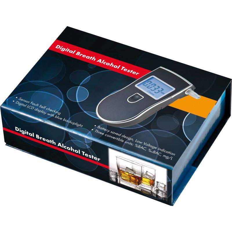 Vytvořit účetDigitální alkohol tester, který vám ukáže přesné množství alkoholu v krvi. Jeho funkčnost je snadná a přesná, potenciální množství alkoholu je již zobrazeno od 0:01 promile. Alarm od hodnoty alkoholu nad 0,5 promile.