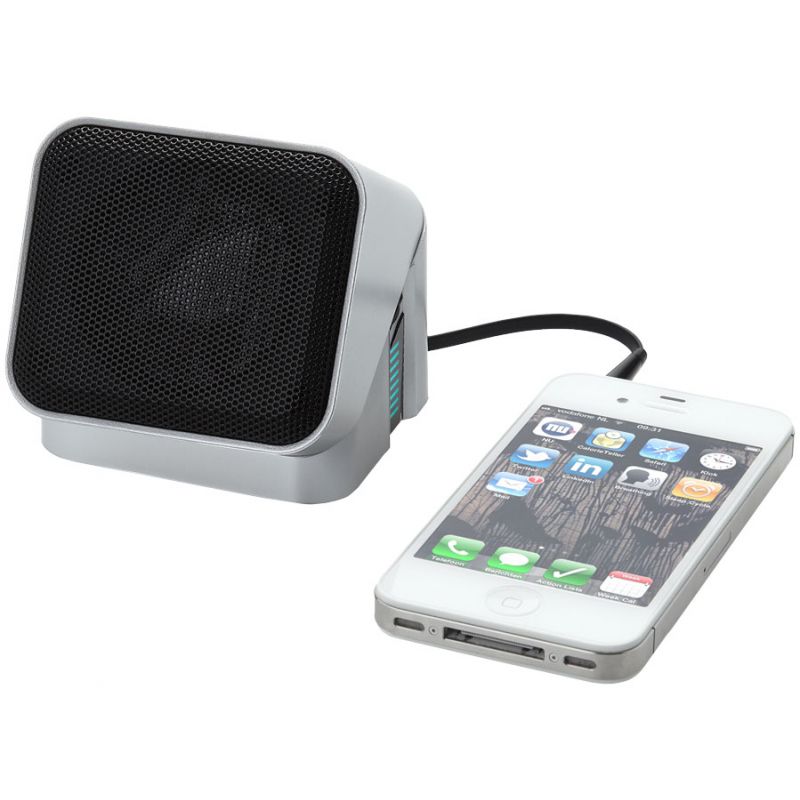MiniCube repro. S modrou LED pro indikaci napětí. Otočný o 180°, fungující na 3x AAA baterie, nejsou součástí, nebo USB dobíjení (kabel přiložen).